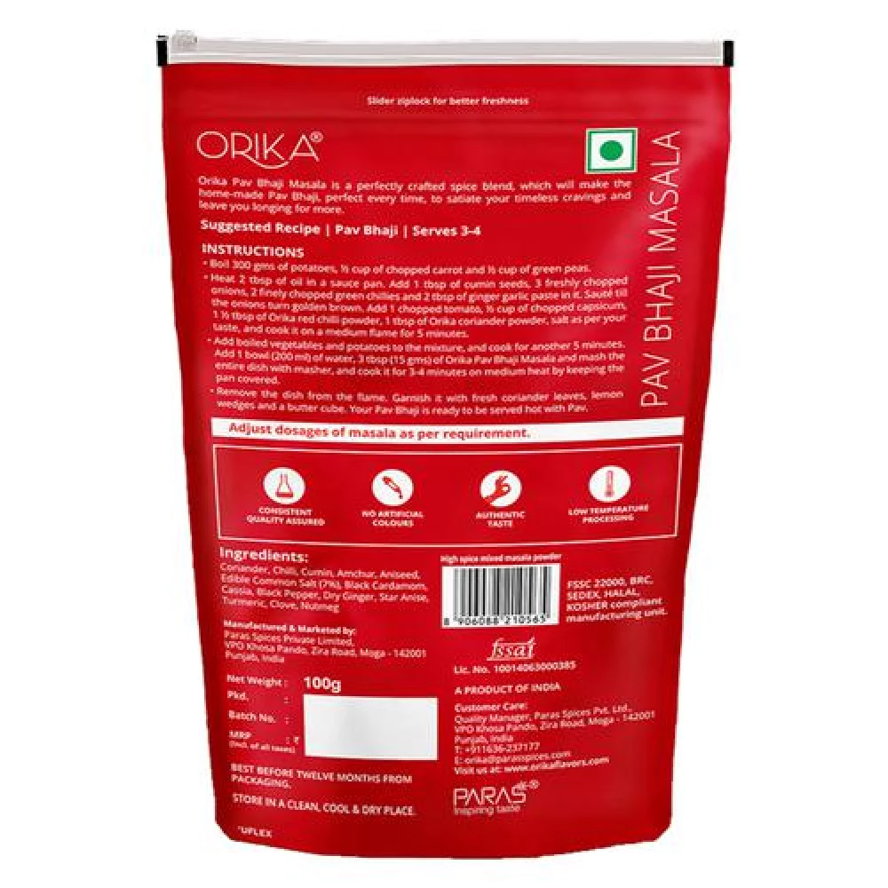 Orika Pav Bhaji Masala, 100 g Standy pouch-1.webp Orika Pav Bhaji Masala, 100 g Standy pouch-2.webp Orika Pav Bhaji Masala, 100 g Standy pouch-3.webp Orika Pav Bhaji Masala, 100 g Standy pouch-4.webp