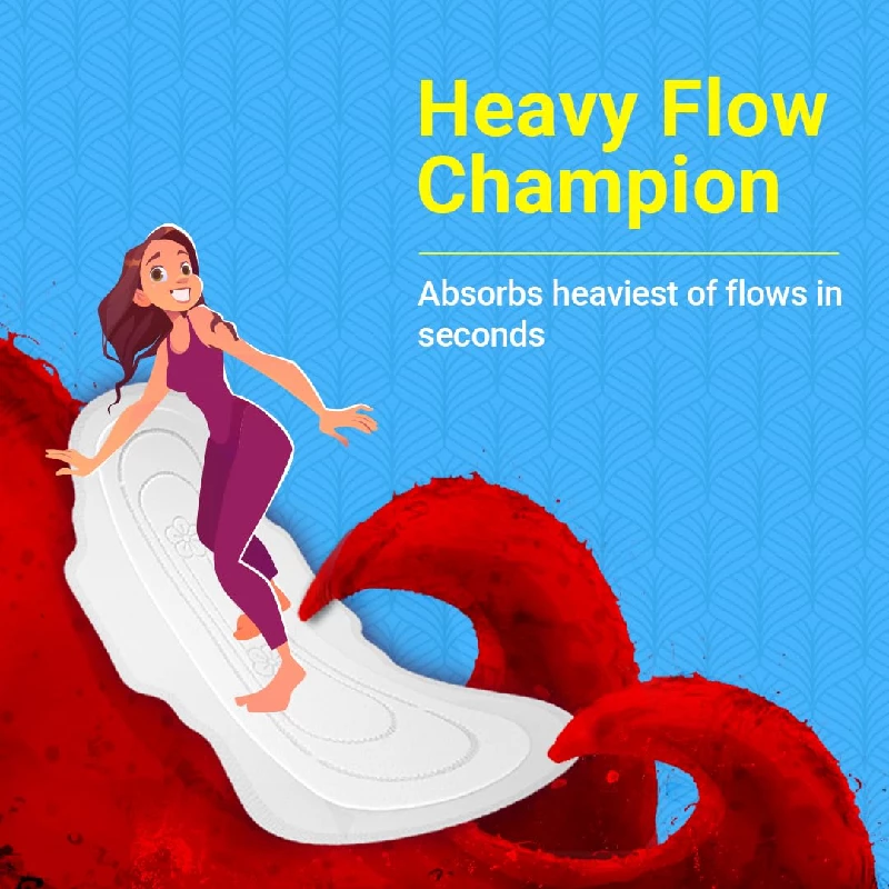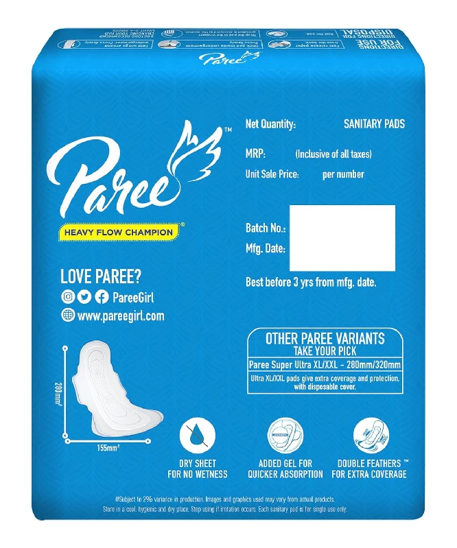 HEAVY FLOW CHAMPION: Paree dry feel pads eliminate the risk of leakage and make sure to give you a mess-free period experience even during heavy flow days ...Show more
