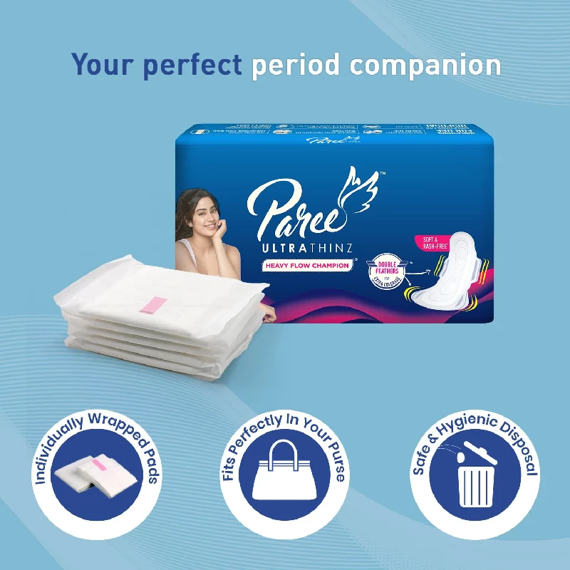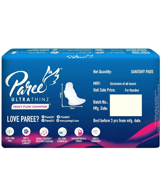 Paree Ultra Thinz Sanitary pads for women eliminate the risk of leakage and ensure a stain-free period experience during heavy flow days. ...Show more