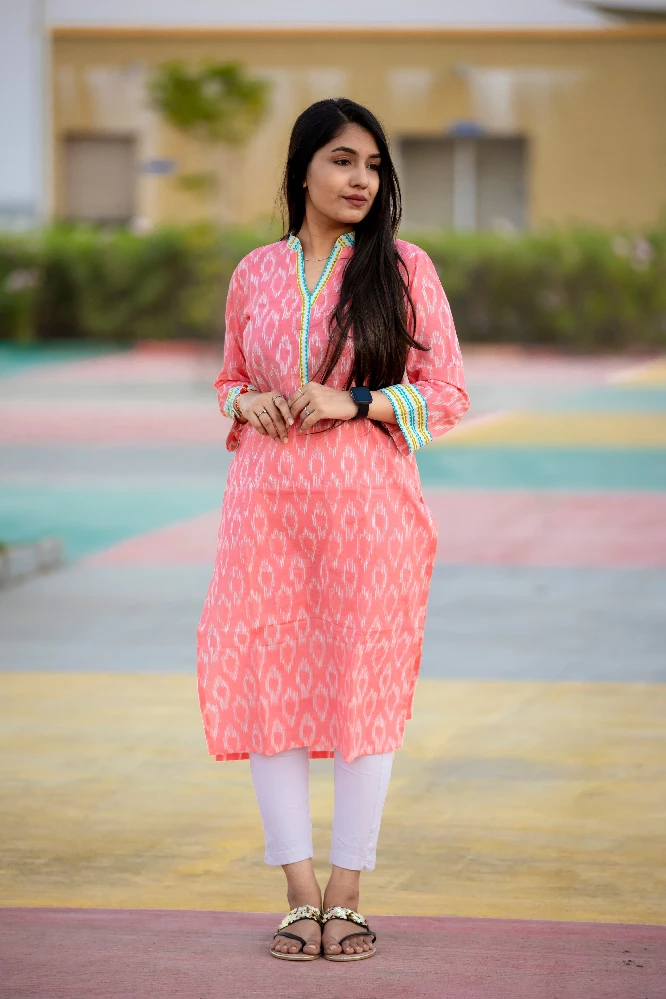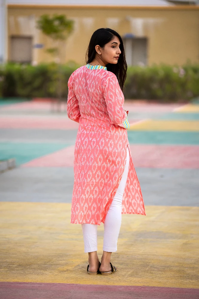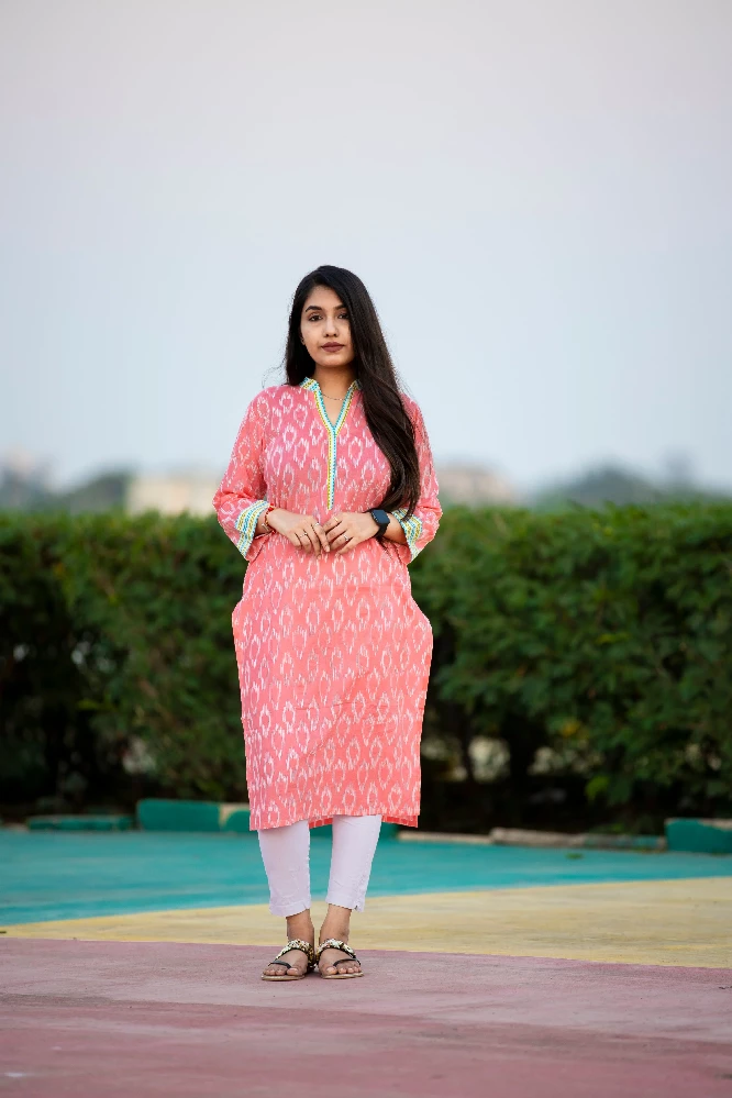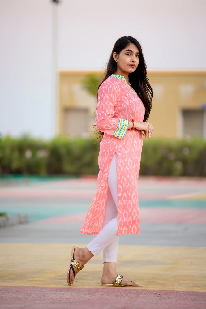pastle-pink-v-neck-kurti