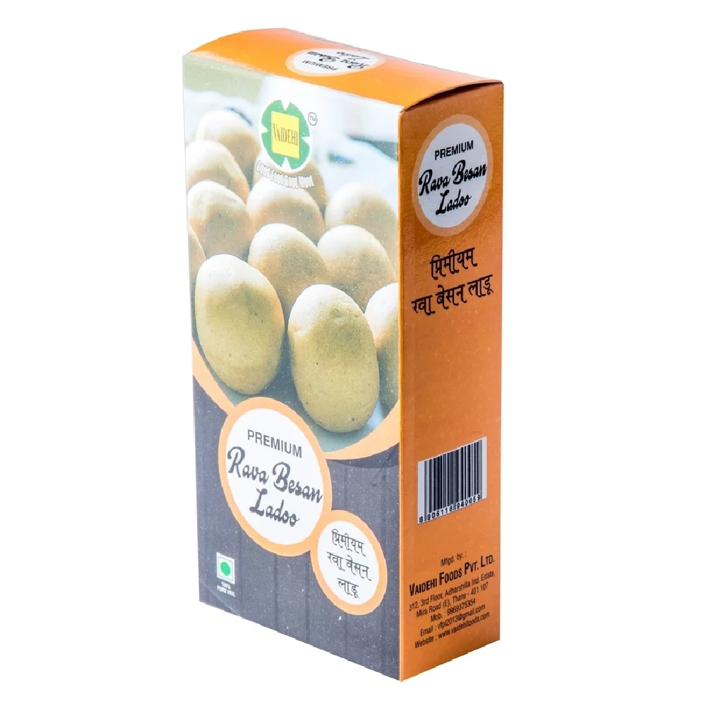 It is a combination of Rava and besan together. The combined taste of both leaves you wanting more. This combination is also used in Northern India for Besan Ladoo. Our Ladoo is made of Besan, Rava, Sugar, ghee and velchi. Indulge in the richness of ...Show more