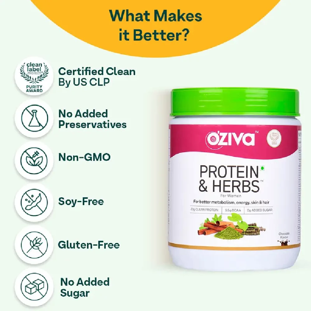 OZiva Protein & Herbs for Women packs 23g of Certified Clean Protein with essential Multivitamins, Minerals, and Ayurvedic Herbal extracts. It is India’s best protein powder for weight control, increased metabolism, higher energy and lean muscle. ...Show more