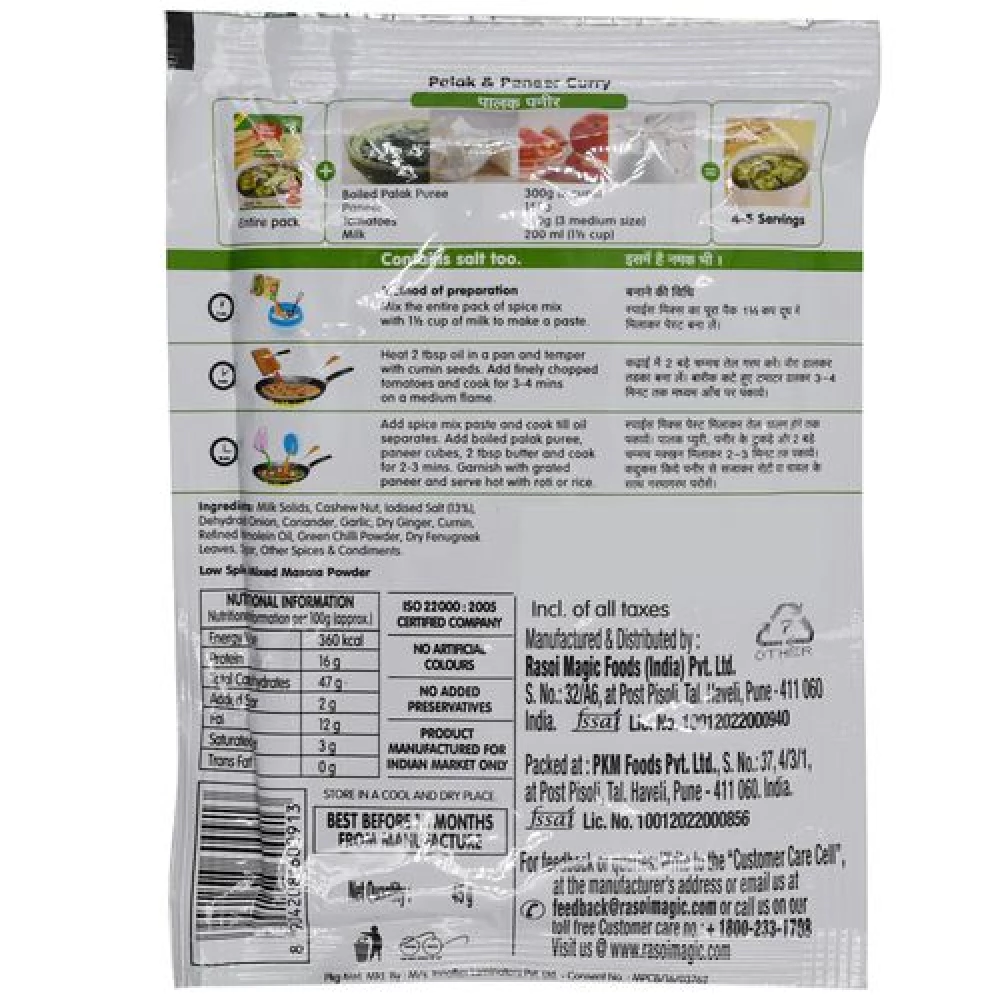 Rasoi Magic Spice Mix - Palak Paneer, 45 g-1.webp Rasoi Magic Spice Mix - Palak Paneer, 45 g-2.webp Rasoi Magic Spice Mix - Palak Paneer, 45 g-3.webp Rasoi Magic Spice Mix - Palak Paneer, 45 g-4.webp Rasoi Magic Spice Mix - Palak Paneer, 45 g-5.webp