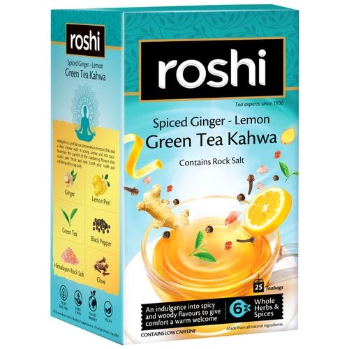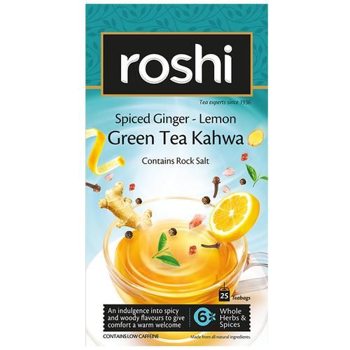 Roshi Green Tea - Kahwa With Ginger & Lemon, 57.5 g (25 Bags x 2.3 g Each)-1.webp
