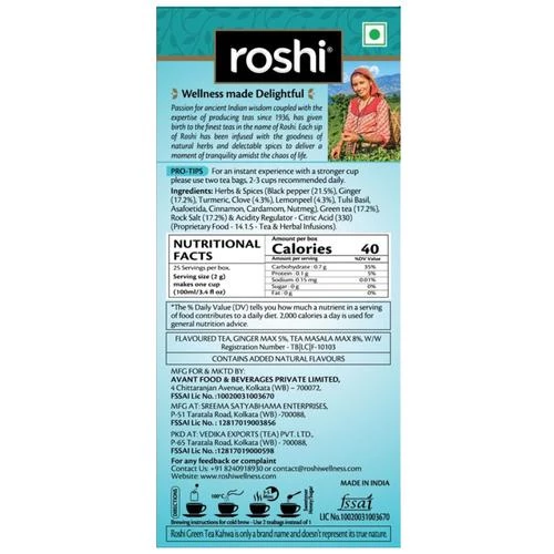 Roshi Green Tea - Kahwa With Ginger & Lemon, For Detoxification ...Show more