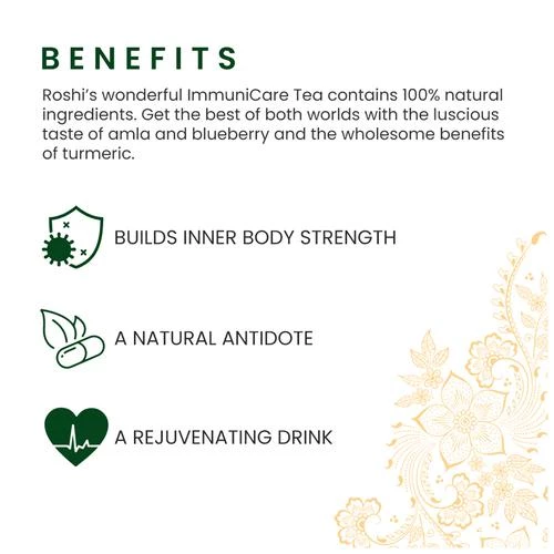 Roshi Herbal Green Tea - ImmuniCare With Turmeric, Amla & Blueberry, Boosts Immunity ...Show more