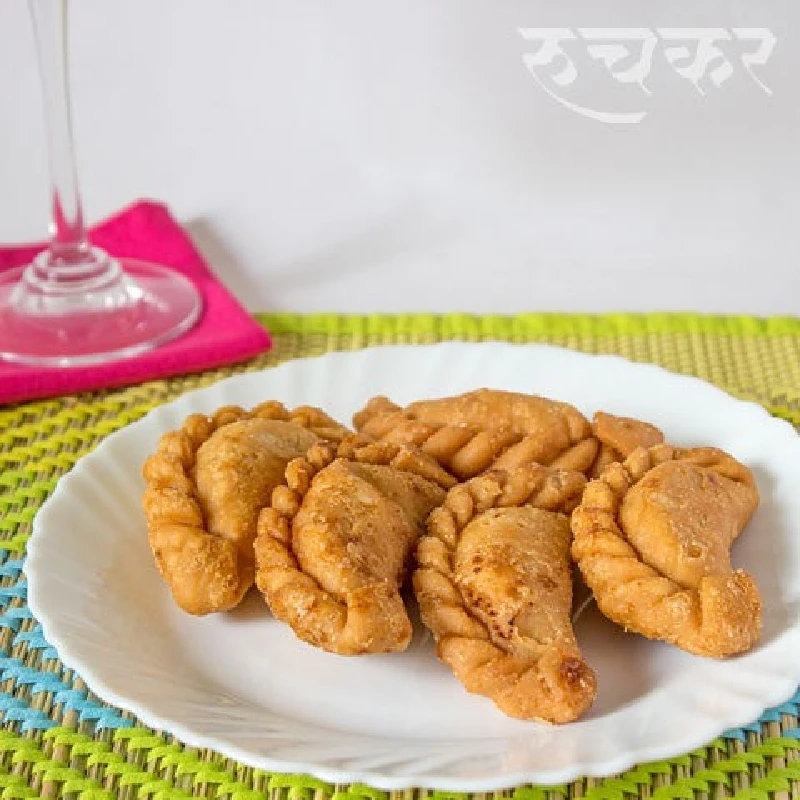 Ruchkar Sakhar Khobre Karanji is a treat not to be missed this festive season. Also known as Gujiya, this Karanji sweet has stuffing of sugar and grated dry coconut, wrapped in a crisp, golden shell. This crunchy and tasty dry snack is one of the fam ...Show more