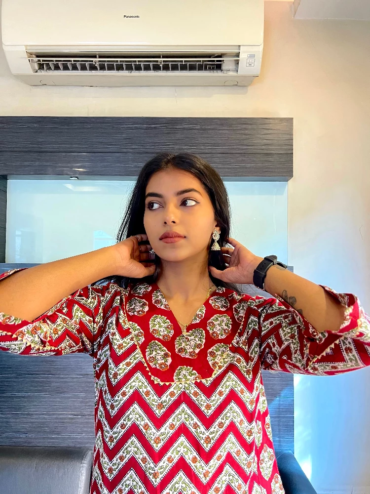 Sangria Red Traverse Sanganeri Hand Print Kurti-1.webp