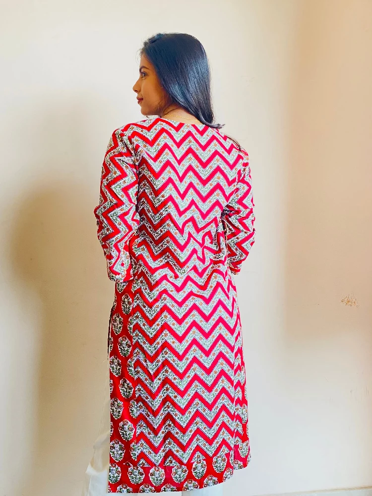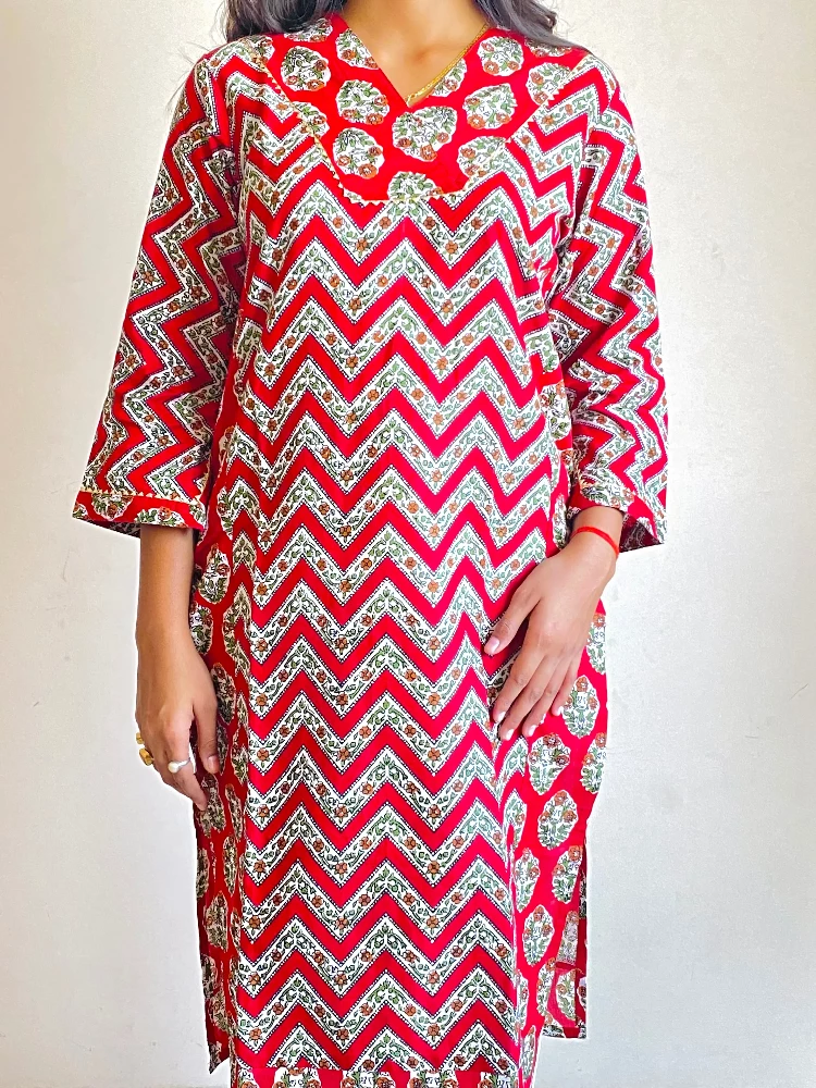 Sangria Red Traverse Sanganeri Hand Print Kurti