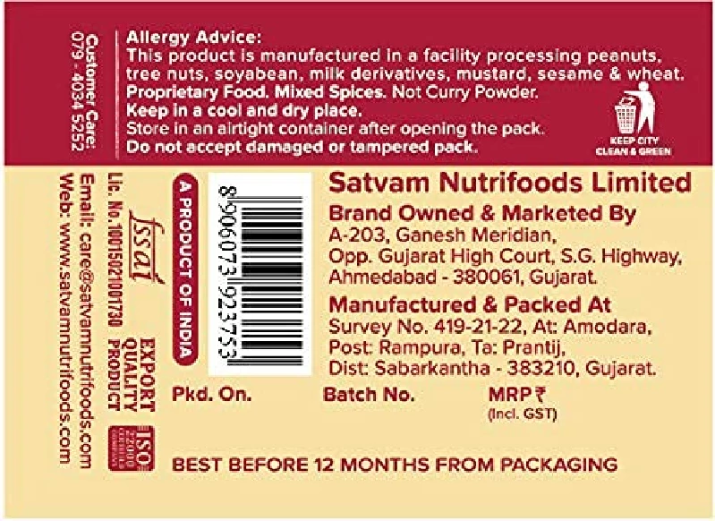 • Product Type : Staples, Powdered Masala