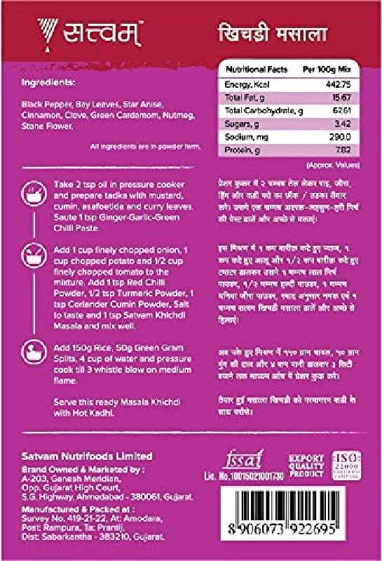 Satvam Khichdi Masala, 50 g-1.webp Satvam Khichdi Masala-2.webp Satvam Khichdi Masala-3.webp Satvam Khichdi Masala-4.webp