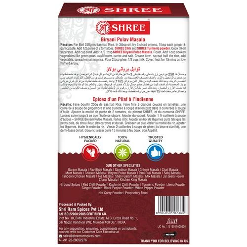 Shree Biryani Pulav Masala - 100% Natural, Authentic, Spicy, Flavour Enhancer ...Show more
