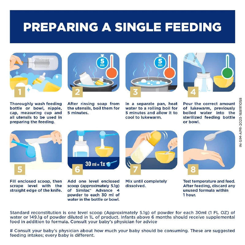 Similac Advance 4 is a spray dried stage 4 follow up infant formula designed for more than 18 months to 24 months baby as part of a healthy diet during and after weaning. ...Show more