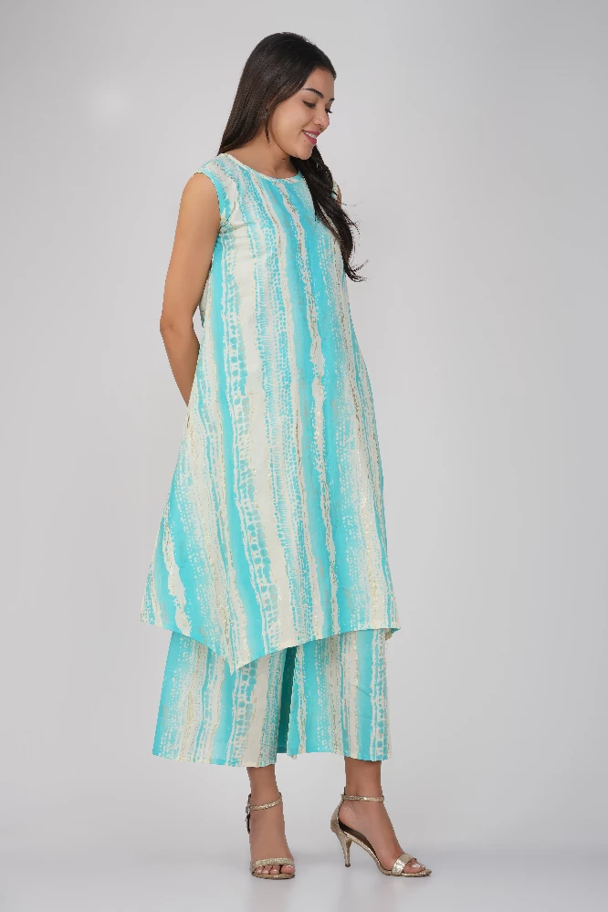 Sky Blue Printed Cotton Kurta Set