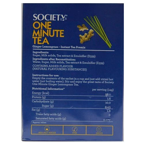 Society One Minute Instant Tea Premix - Ginger & Lemongrass, 140 g (14 Sachet x 10 g each)-1.webp Society One Minute Instant Tea Premix - Ginger & Lemongrass, 140 g (14 Sachet x 10 g each)-2.webp Society One Minute Instant Tea Premix - Ginger & Lemongrass, 140 g (14 Sachet x 10 g each)-3.webp