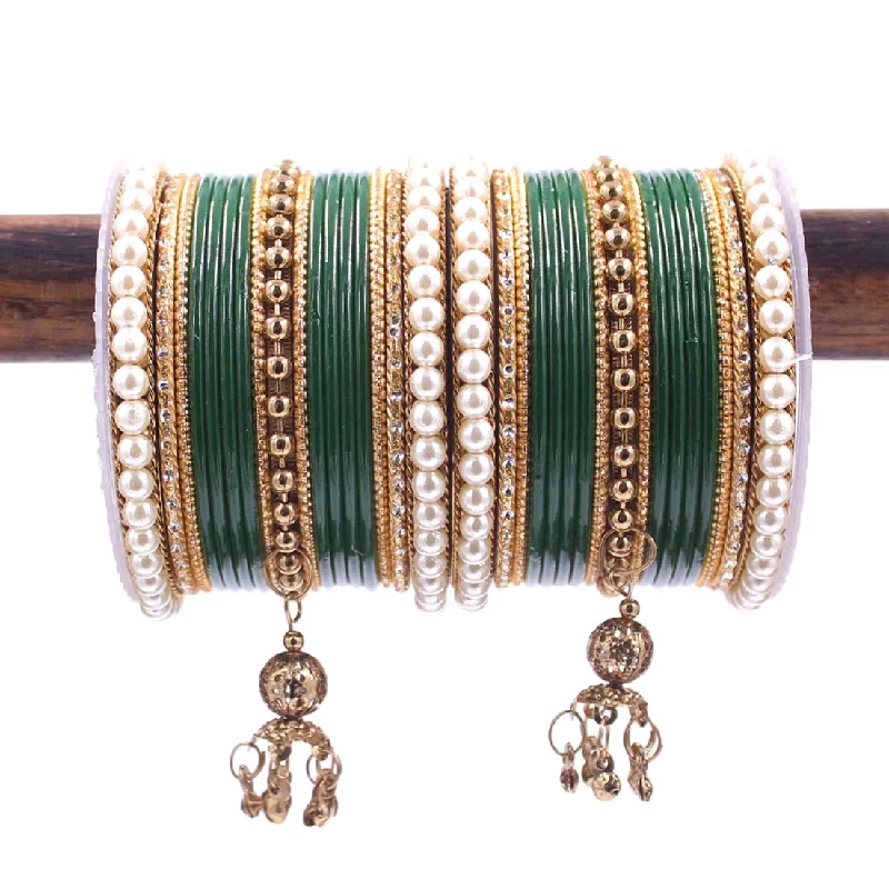 Traditional Designer Pearl & Jhumki Bangles Set-Imitation Jewellery, Green (173119)-1.webp