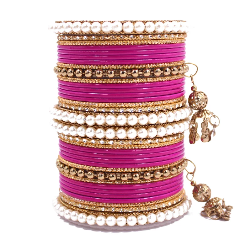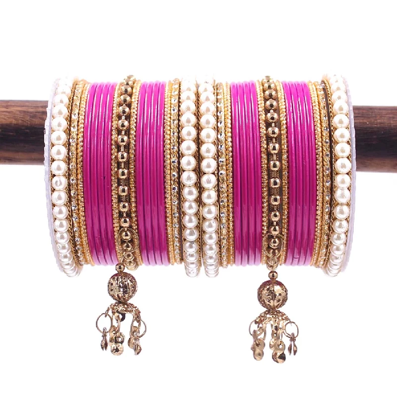 Traditional Designer Pearl & Jhumki Bangles Set-Imitation Jewellery, Rani Pink (173123)-1.webp Traditional Designer Pearl & Jhumki Bangles Set-Imitation Jewellery, Rani Pink (173123)-2.webp