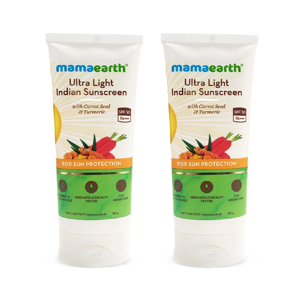 Ultra Light Indian Sunscreen with Carrot Seed, Turmeric and SPF 50 PA+++, 80ml(Pack of 2)-1.webp