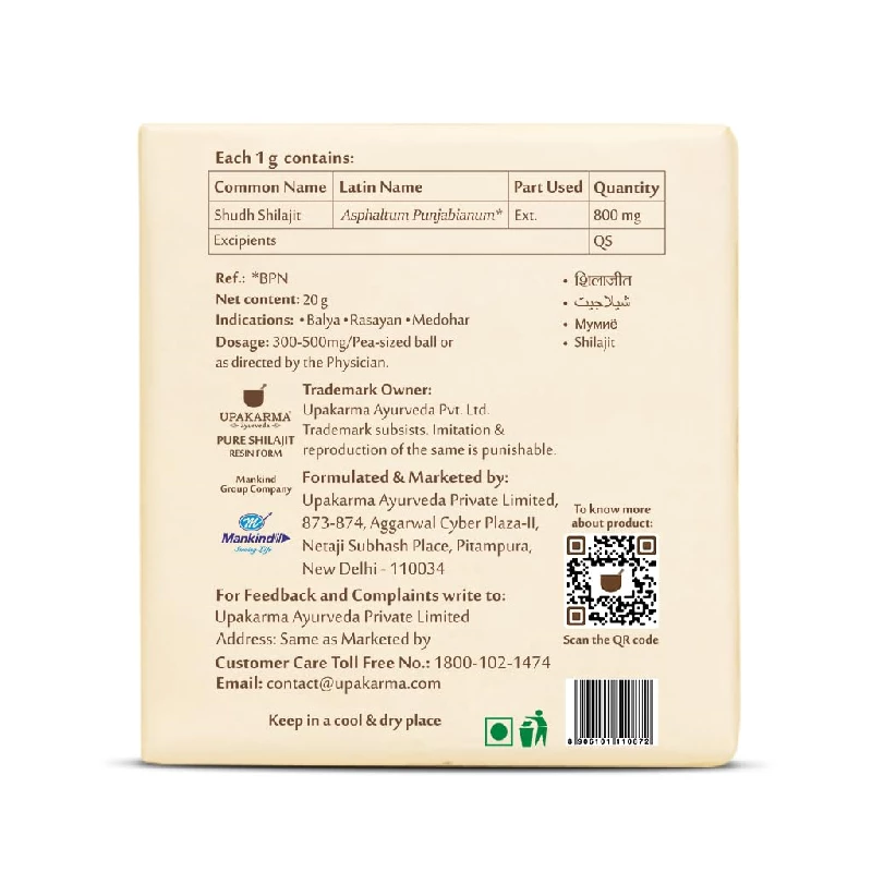 Experience the natural potency of Upakarma Original Shilajit Resin. Sourced from the pristine Himalayas, this pure resin is rich in essential minerals and fulvic acid, offering numerous health benefits. Boost your energy, enhance vitality, and improv ...Show more