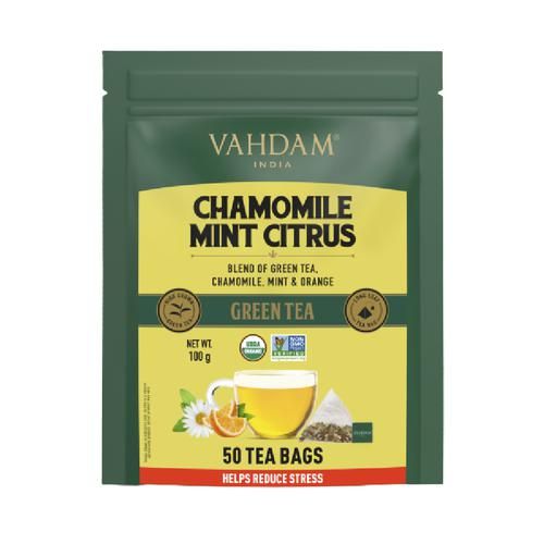 Vahdam  Chamomile Mint Citrus Green Tea - Rich In Antioxidants & Helps Boost Immunity, 2 g (50 Bags x 2g Each)-1.webp