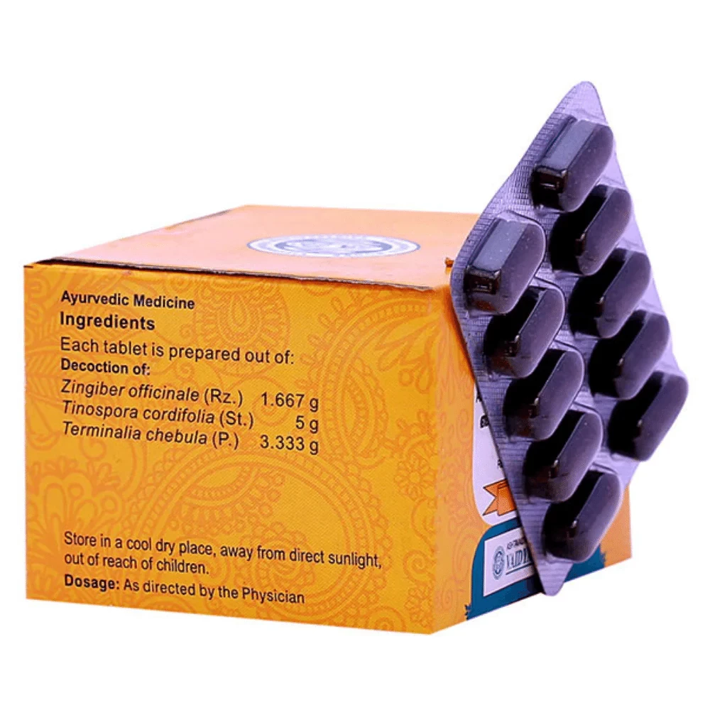 Vaidyaratnam Amruthotharam Kashaya Gulika Tablet is an ayurvedic preparation used to treat conditions like fever, poor digestive health, and rheumatoid arthritis. The herbs used in making kashaya gulika tablets are giloy, haritaki, and adrak. The kas ...Show more