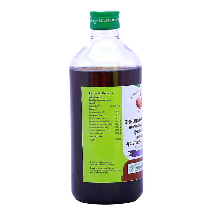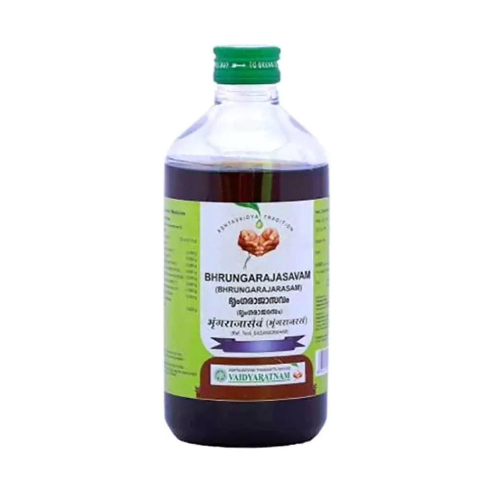Vaidyaratnam Bhringarajasavam is also called Bhrungarajasavam. This is a classic Ayurvedic formulation. Form: Liquid Type: Herbal tonic Gender: Both men and women ...Show more
