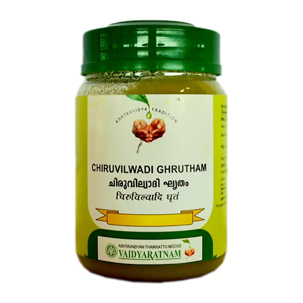 Vaidyaratnam Chiruvilwadi Ghrutham is an Ayurvedic formulation. This herbal decoction is traditionally used for stomach disorders. ...Show more