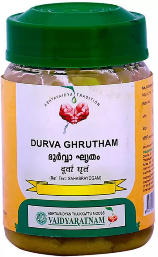 Vaidyaratnam Durva Ghrutham is an Ayurvedic formulation. This herbal decoction is traditionally used for skin disorders. ...Show more