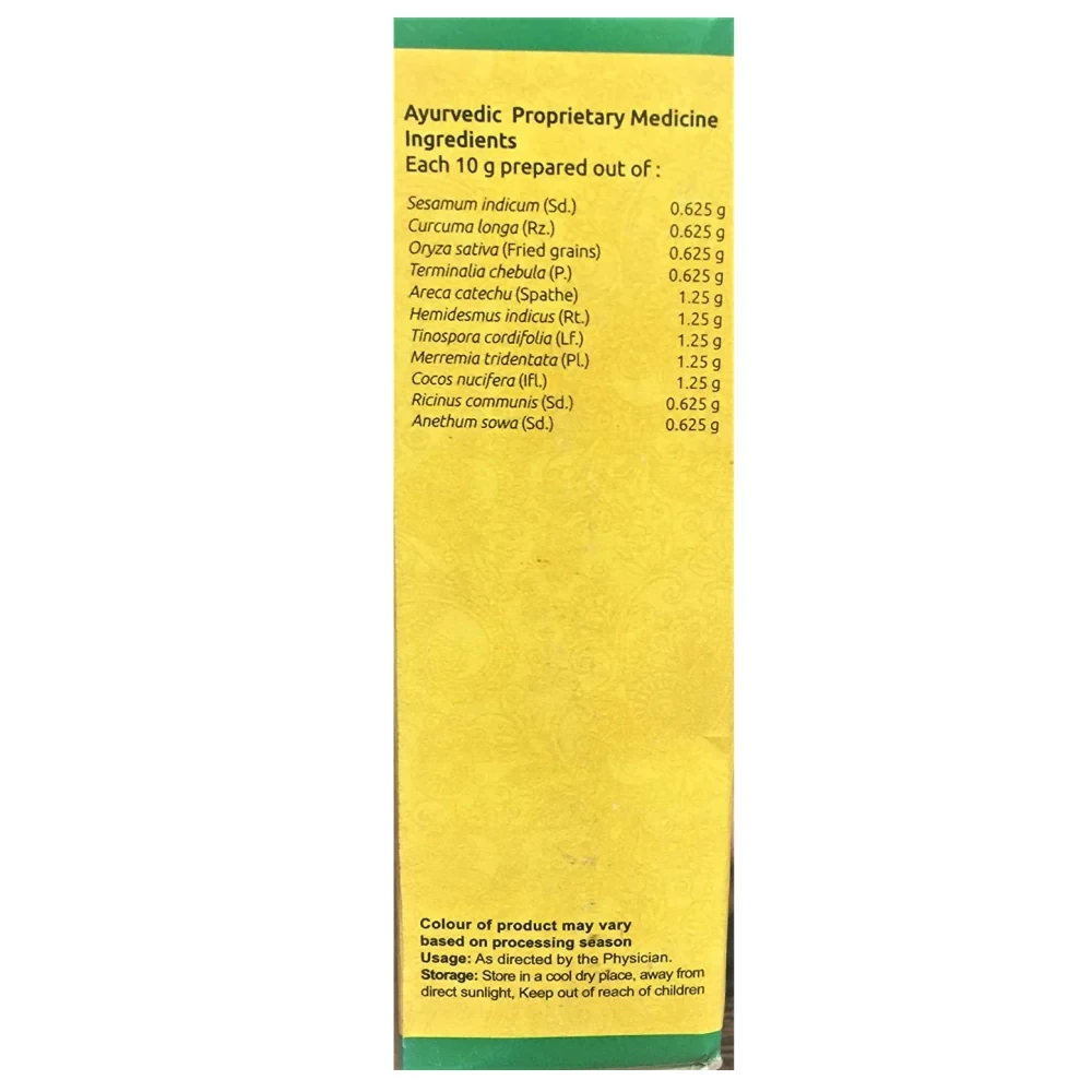 Vaidyaratnam Ellumnishadi Choornam is a classic Ayurvedic formulation. This herbal supplement is known for its anti-inflammatory properties. Form:Powder Ideal for: Adults Type:Herbal supplement Gender:Both men and women ...Show more