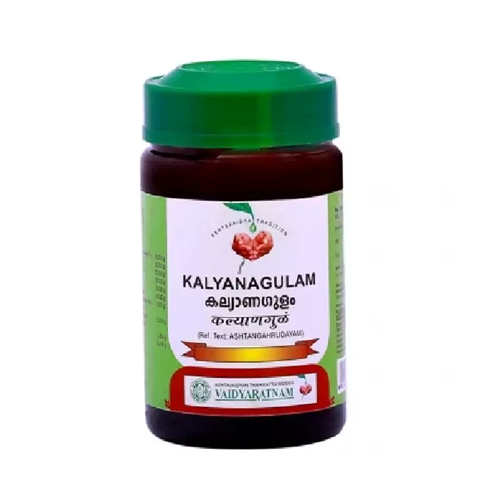 Vaidyaratnam Kalyana Gulam is an Ayurvedic formulation. This herbal decoction is traditionally used for bloating. Form: Powder Type: Herbal supplement Ideal for: Children and adults Gender: Both men and women ...Show more