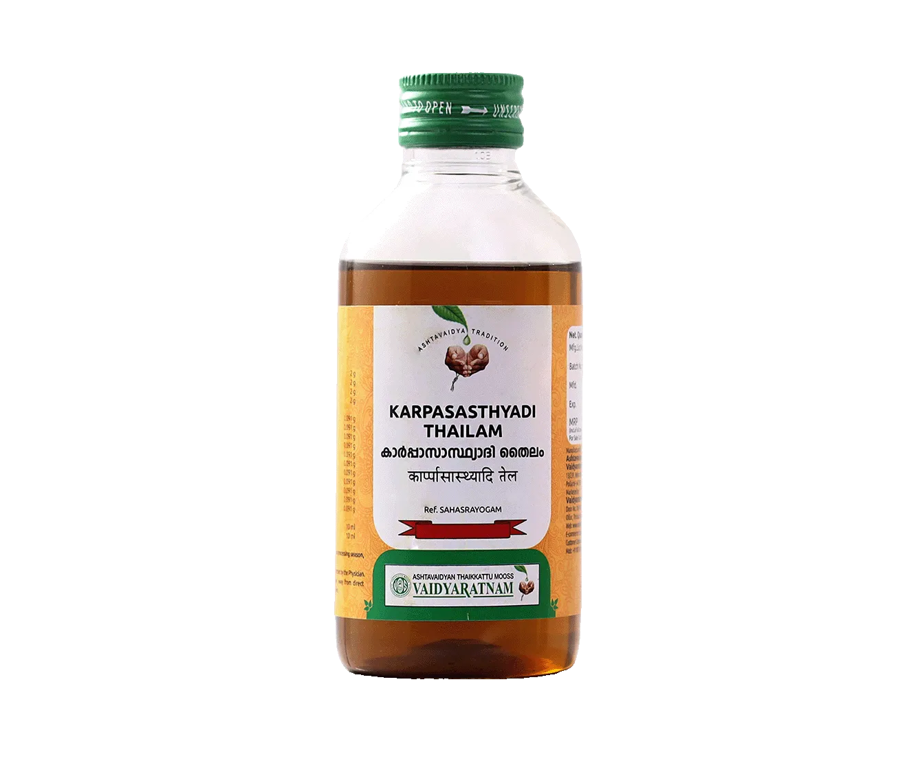 Vaidyaratnam Karpasasthyadi Thailam, 200 ml-1.webp Vaidyaratnam-Karpasasthyadi-Thailam-200-ml-1.webp Vaidyaratnam-Karpasasthyadi-Thailam-200-ml-2.webp