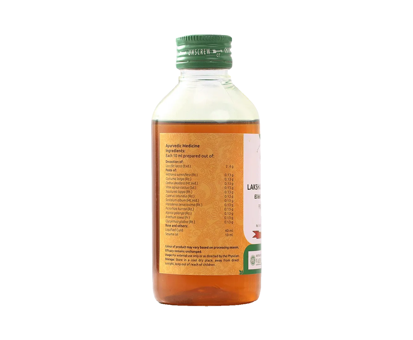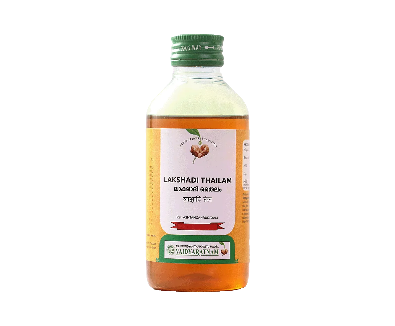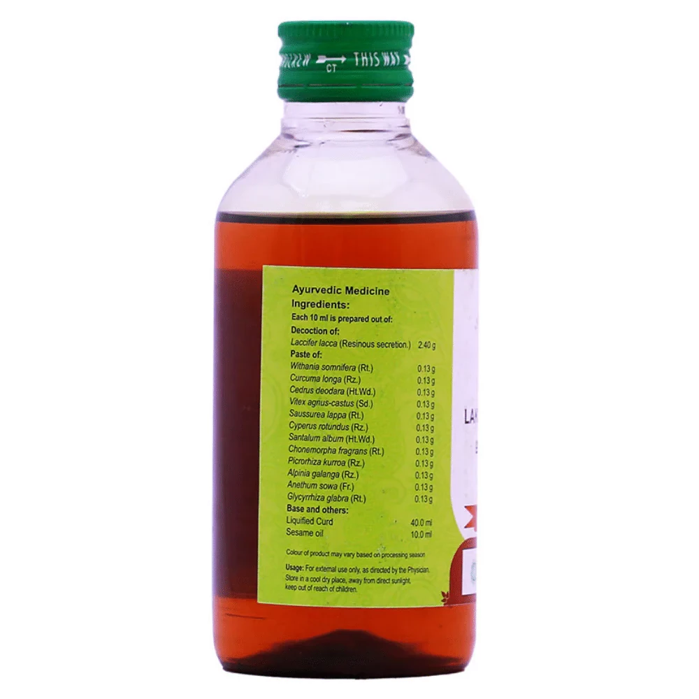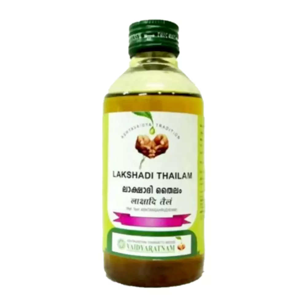 Vaidyaratnam Lakshadi Thailam Benefits Vaidyaratnam Lakshadi Thailam is a very useful ayurvedic medicine for Mania, catarrhal affections, emaciation. Coconut Oil is good for children.It is a herbal oil, used in the treatment of fever and related b ...Show more