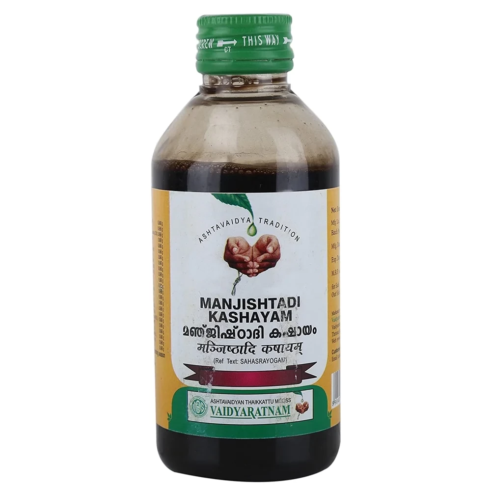 Vaidyaratnam Manjishtadi Kashayam, 200 ml-1.webp Vaidyaratnam Manjishtadi Kashayam, 200 ml-2.webp Vaidyaratnam Manjishtadi Kashayam, 200 ml-3.webp Vaidyaratnam Manjishtadi Kashayam, 200 ml-4.webp