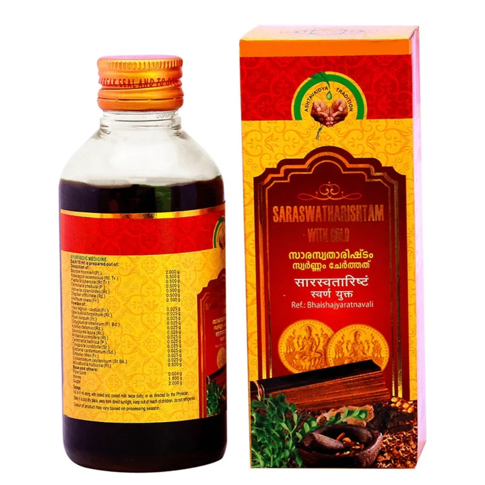 Vaidyaratnam Saraswatharishtam with gold, 450 ml-1.webp Vaidyaratnam Saraswatharishtam with gold, 450 ml-2.webp Vaidyaratnam Saraswatharishtam with gold, 450 ml-3.webp Vaidyaratnam Saraswatharishtam with gold, 450 ml-4.webp Vaidyaratnam Saraswatharishtam with gold, 450 ml-5.webp