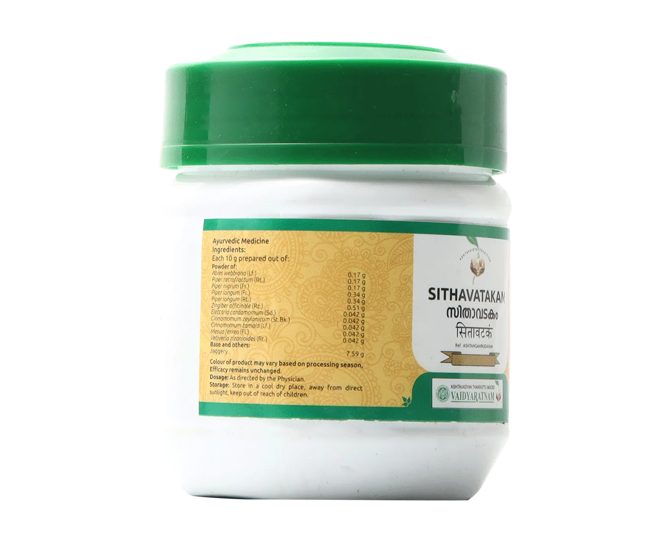 Vaidyaratnam Sithavatakam, 50 g-1.webp Vaidyaratnam-Sithavatakam-50-g-1.webp Vaidyaratnam-Sithavatakam-50-g-2.webp