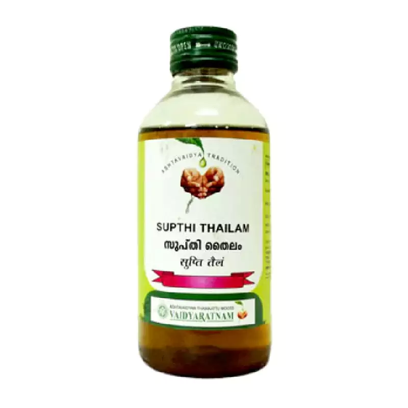 Vaidyaratnam Supthi Thailam is a very effective ayurveda medicine in numbness of the body. ...Show more