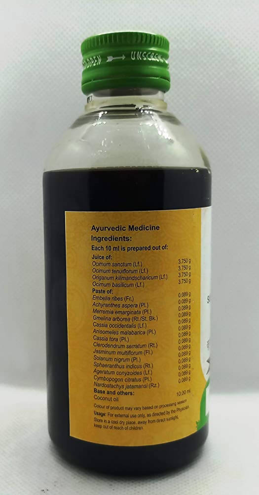 Vaidyaratnam Surasadi Kera Thailam is a very effective ayurvedic oil in dandruff, scabies, sinusitis, etc. ...Show more