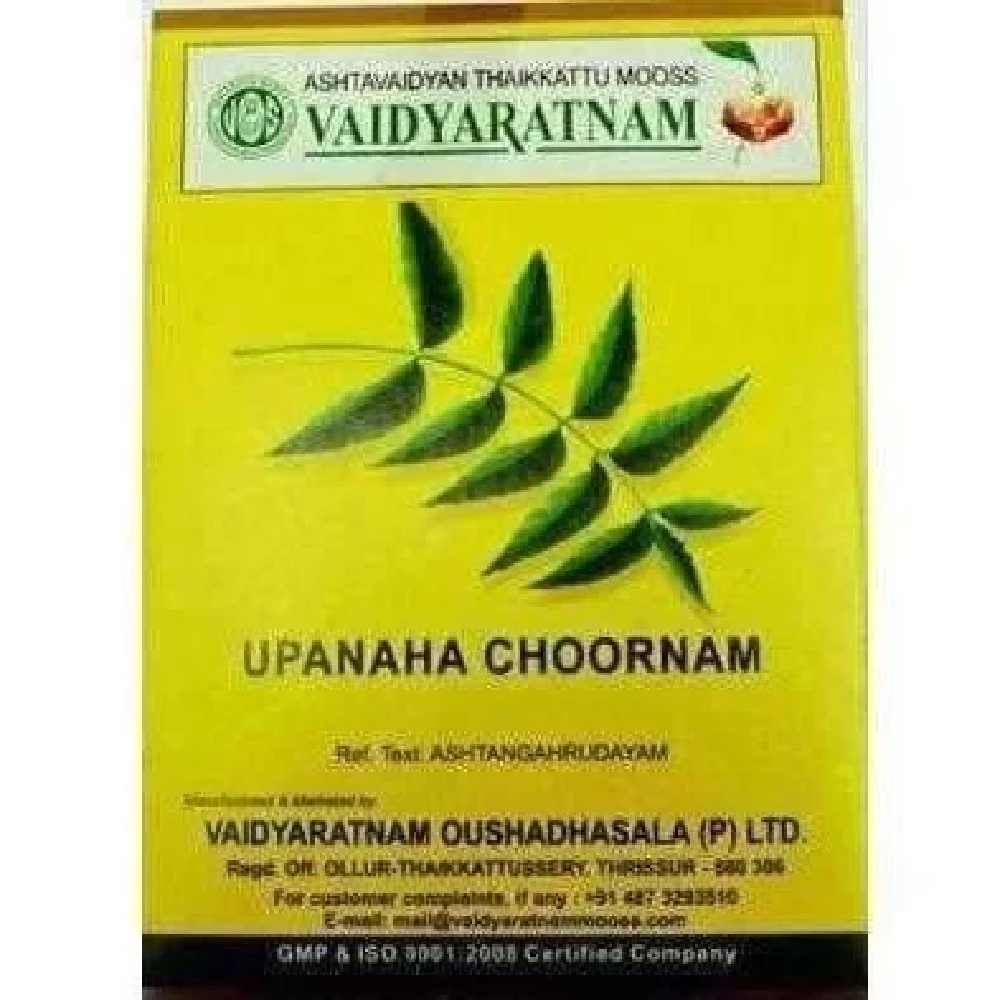 Vaidyaratnam Upanaha Choornam is an Ayurvedic formulation. This is generally works as a pain relief. Form: Powder Ideal for: Adults Type: Herbal supplement Gender: Both men and women ...Show more