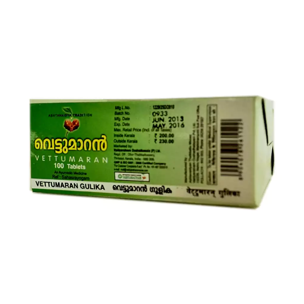Vaidyaratnam Vettumaran Gulika Tablets, 100 Tablets-1.webp