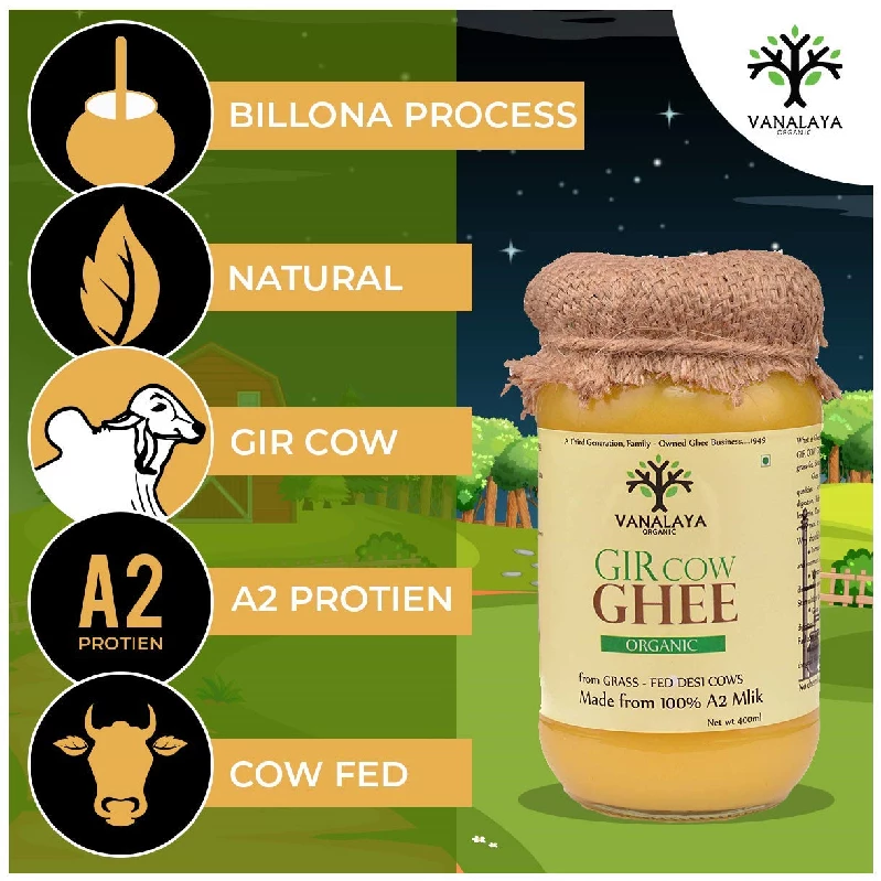 PURE GIR GHEE: Vanalaya gir cow ghee is nutritious, healthy, pure and unadulterated ghee with a2 proteins made from a2 milk of indian native cows. ...Show more