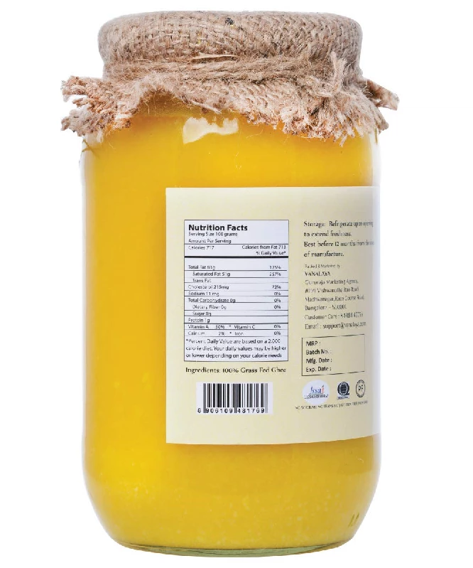 Discover the health benefits of Vanalaya Gir Cow Ghee, a premium choice made from the milk of Indian native cows. Unlike other ghee products, ours is genuinely 100% natural and crafted from grass-fed cow milk. Free from additives and truly organic, i ...Show more