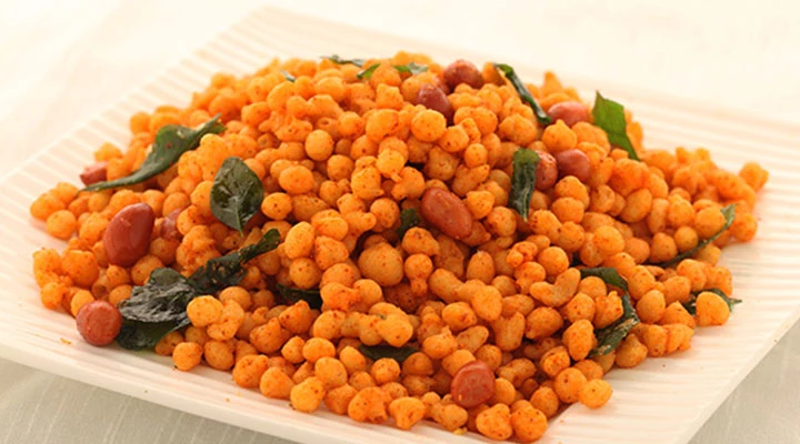 A gram flour batter is whisked to the perfect consistency and boondis of small and equal sizes are fried in sunflower oil. After being fried to the optimum level, we add the spices, ground nuts and curry leaves to give you the best flavours, all pack ...Show more