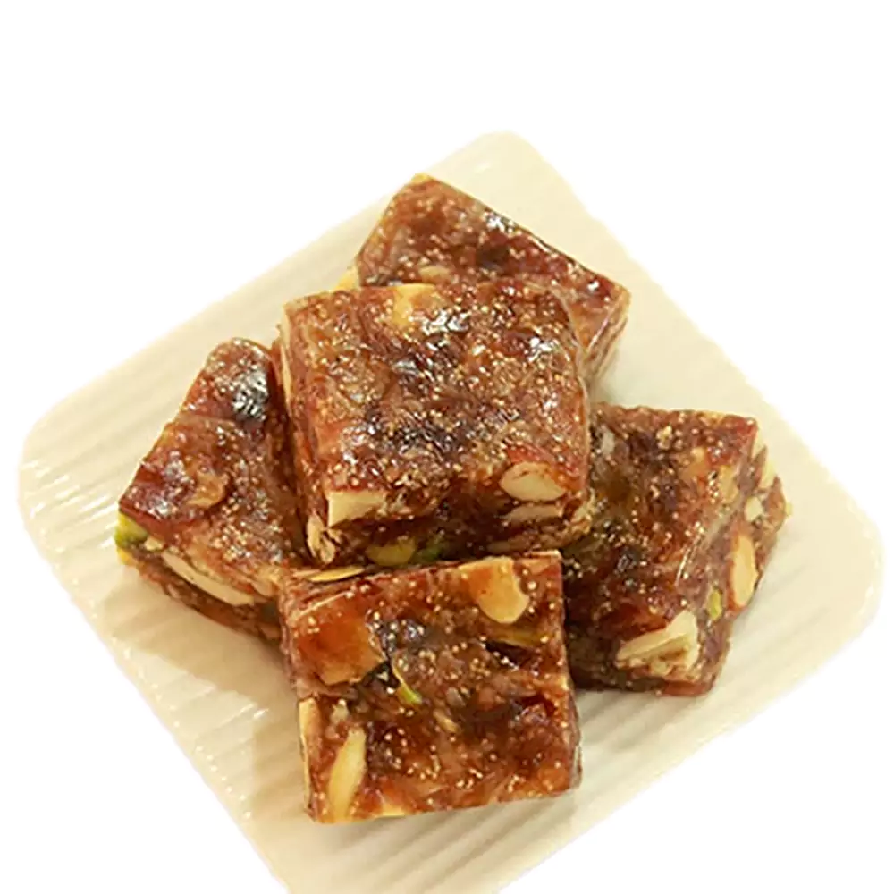 Vellanki Foods Karjura Burfi is a mouthwatering sweet recipe. This dish is dark brown in color and filled with nuts. The sweets are square-shaped. Karjura burfi are festive special and can be gifted during Diwali. ...Show more