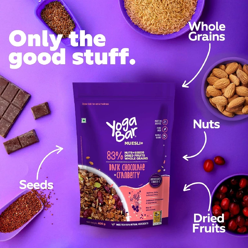 Yogabar Dark Chocolate & Cranberry Muesli, 700 g-1.webp